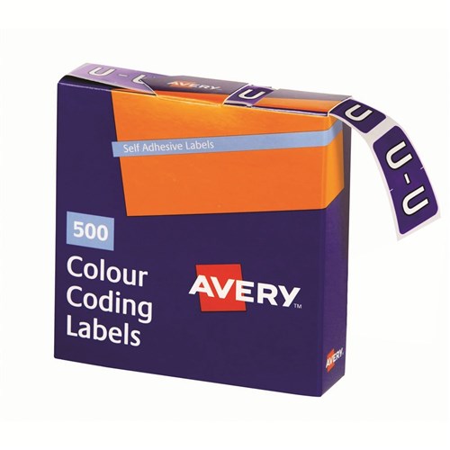 Avery Alphabet Coding Label U Side Tab 25x38mm Purple Box Of 500