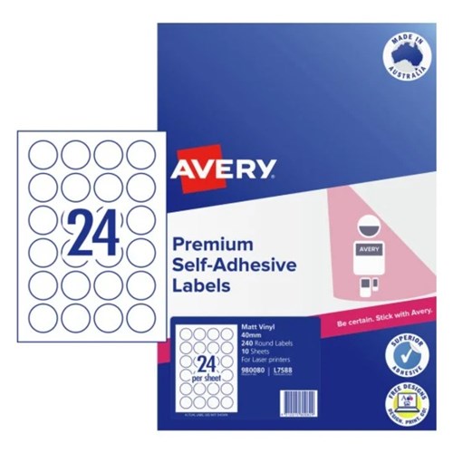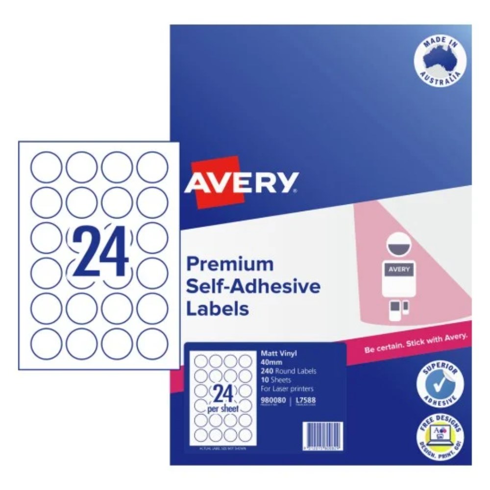 Avery Durable Blank Printable Labels L7588 40mm Round Matte White 24UP 240 Labels