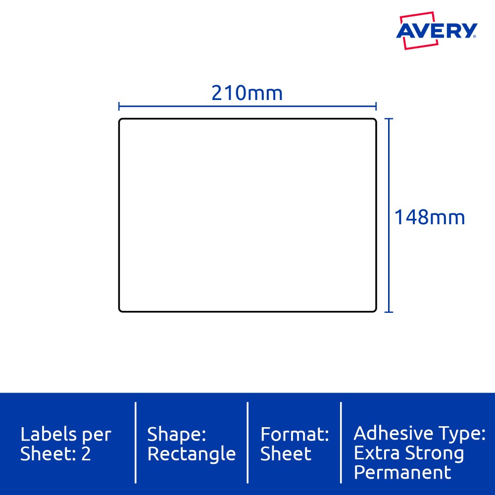 • Size: 210x148mm 20 labels, 10 sheets. 2 labels per sheet (2UP).