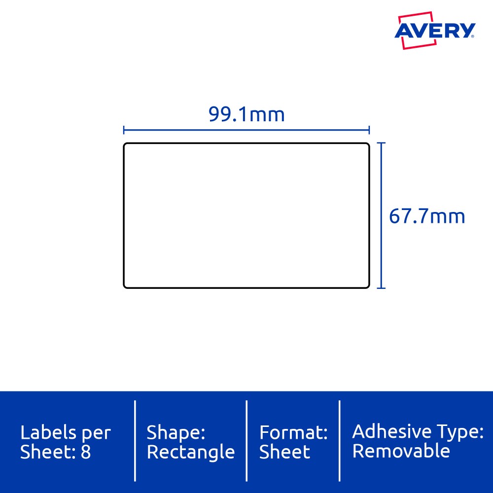 • Size: 99.1x67.7mm 160 labels, 20 sheets. 8 labels per sheet (8UP).