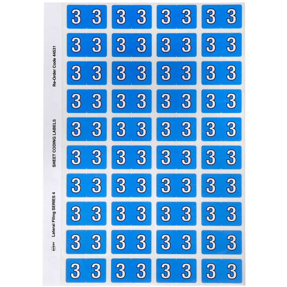 Avery Numeric Coding Label 3 Side Tab 25x42mm Blue Pack Of 240