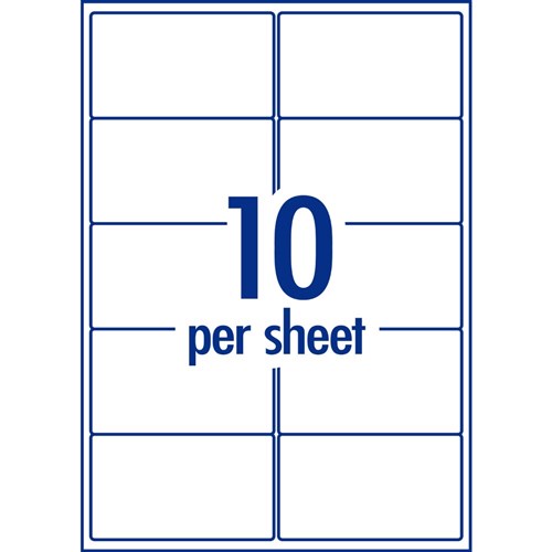 • Size: 99.1 x 57mm, 1000 labels, 100 sheets, 10 labels per sheet (10UP).