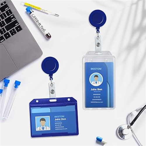 • Includes a sturdy retractable reel, split ring, and clear card strap. Perfect for securely displaying ID badges, access cards, name tags or security passes. Ideal for office staff, school faculty, event organisers, medical personnel and more.