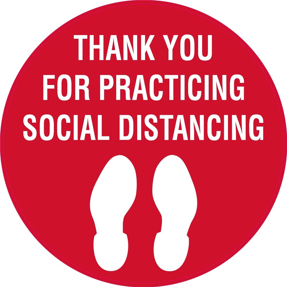 • Wording: Thank You For Practicing Social Distancing (with footprint picto).