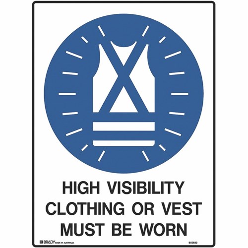 Brady Mandatory Sign High Vis Clothing Must Be Worn 450W x 600mmH Metal White/Blue