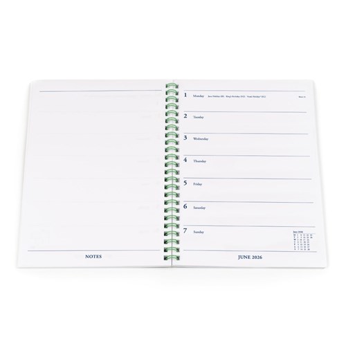 • This Colplan planner offers reliable and easy-to-use format in a practical A5 wire weekly notebook.