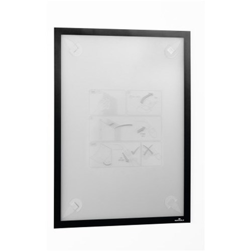 • Quick insertion and exchange of documents via a fold-back magnetic frame.