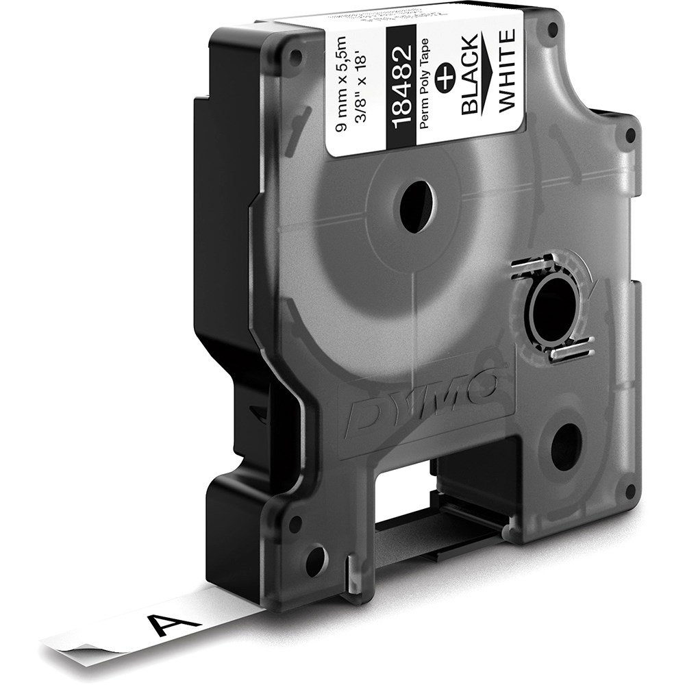 Dymo 18482 Rhino Industrial Labels 9mmx5.5m Polyester Black on White