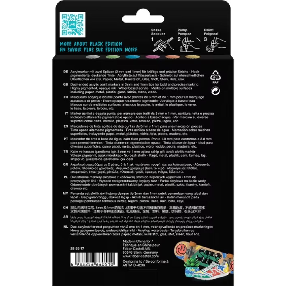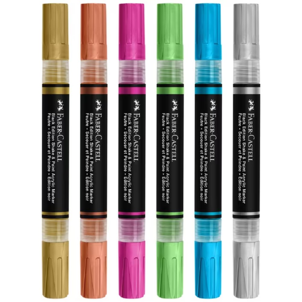 Faber-Castell Black Edition Shake & Paint Markers Bullet Metallic Assorted Set Of 6