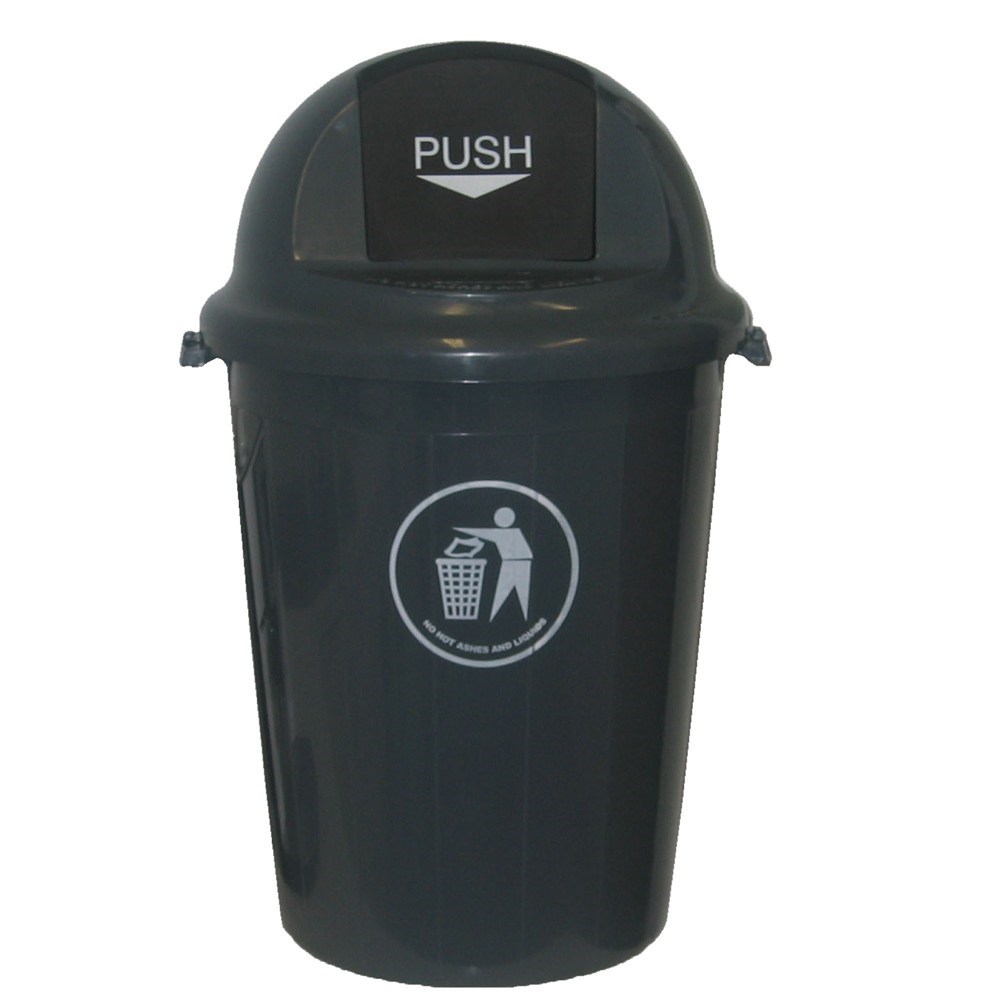 • Heavy duty bin with weighted swing top lid.