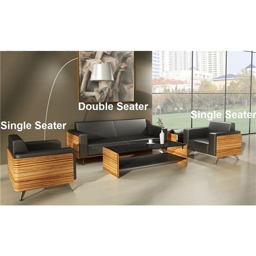 Novara Lounge 2 Seater 1490W x 820D x 815mmH Zebrano Sides And Black Leather