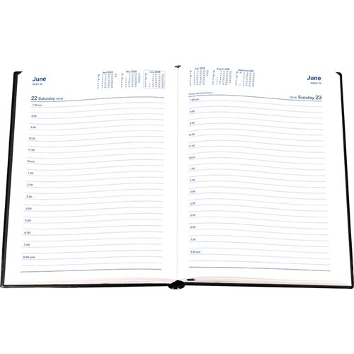 • Stylish hardcover casebound diary with blue leather grain cover.