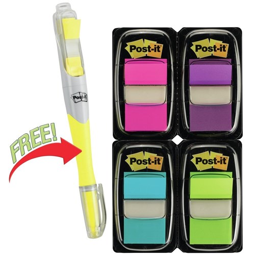 Post-It 680-PPBGVA Flags Value Pack 25x43mm Bright Colours + Highlighter Pack of 200