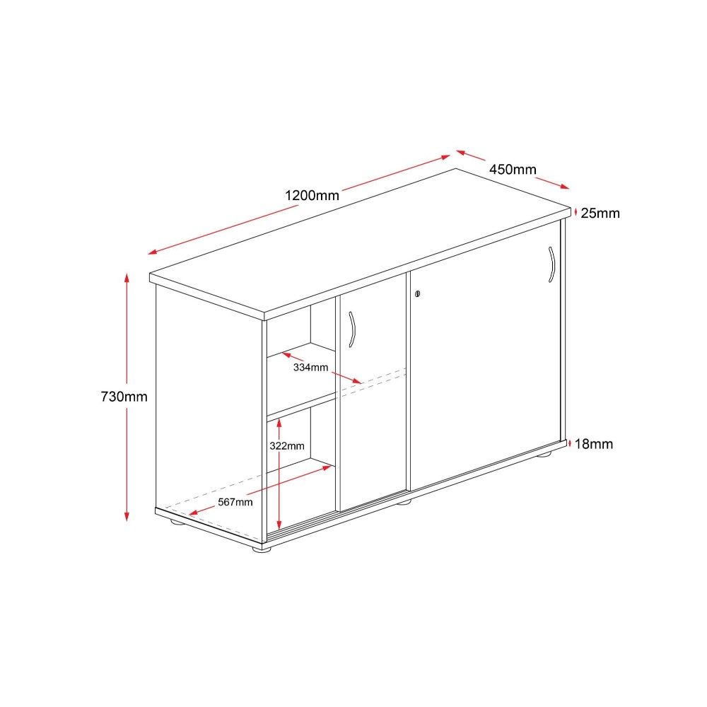 Rapidline Credenza Sliding Doors 1200W x 450D x 730mmH Cherry And Ironstone