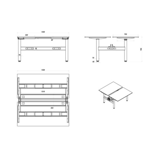 • Per User Dimensions: 1500W x 750D x 730mmH.