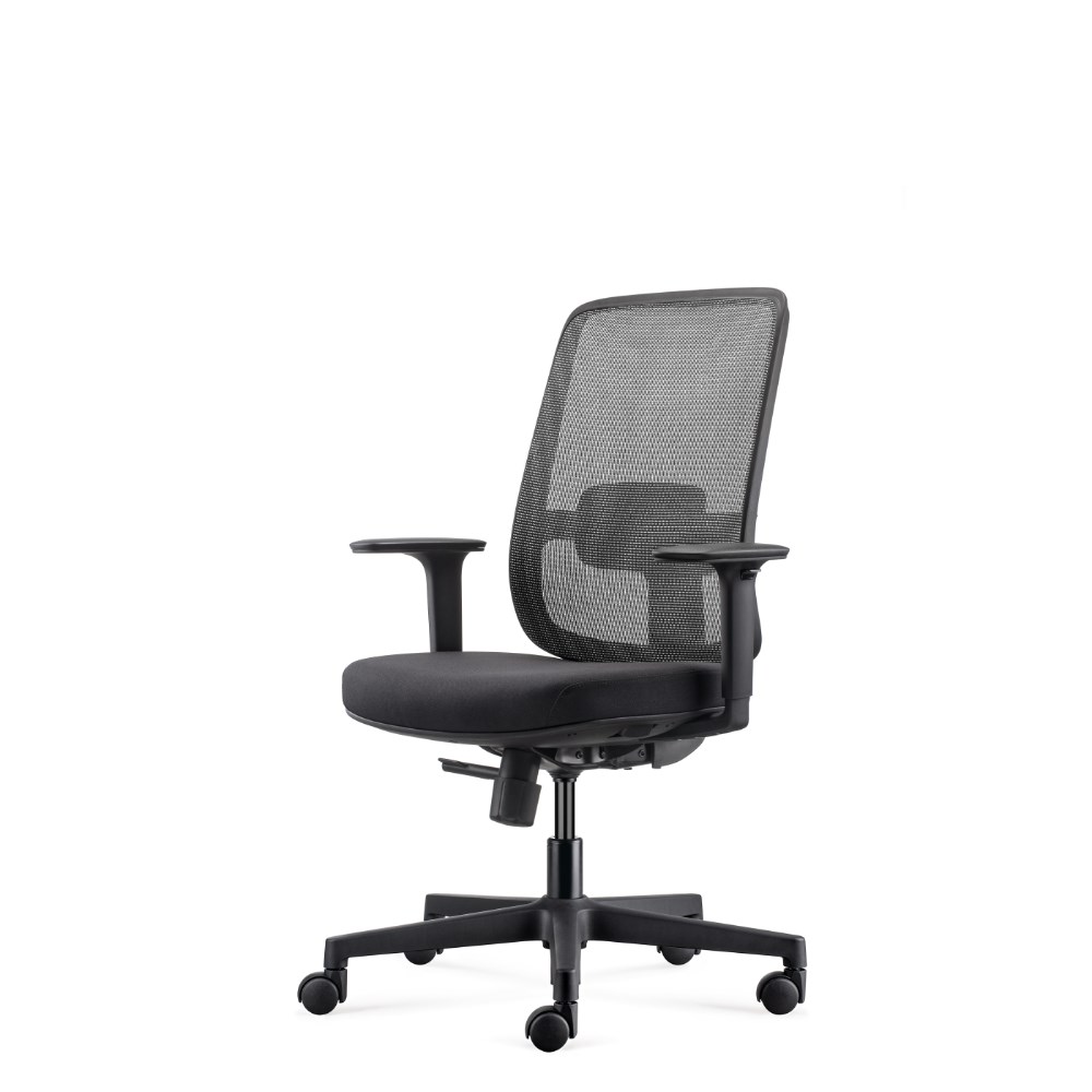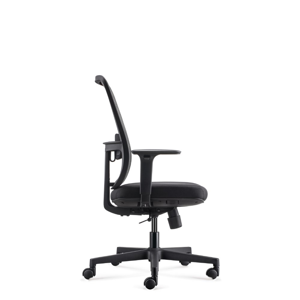 • Lotto medium back operator chair. Medium back. Black with grey backed mesh and black fabric seat. Black PP and fiberglass mix frame.