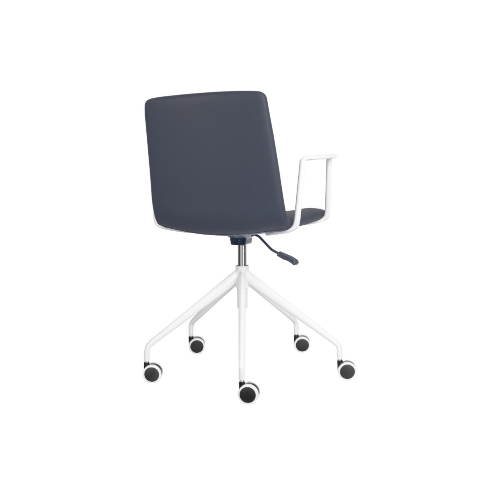 Rapidline Pixel Breakout Room Chair With Arms White Legs French Navy PU Leather Seat