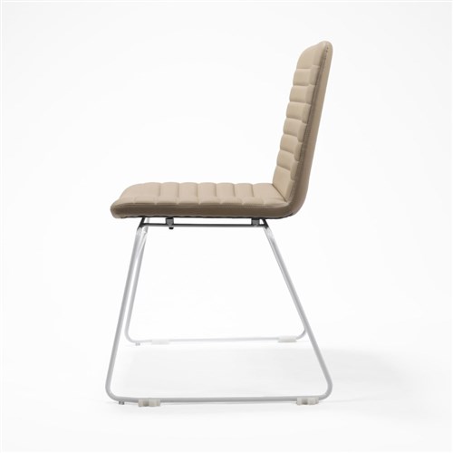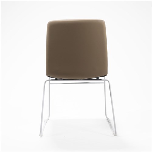 Rapidline Pixel Visitor Chair White Sled Base Almond PU Leather Seat