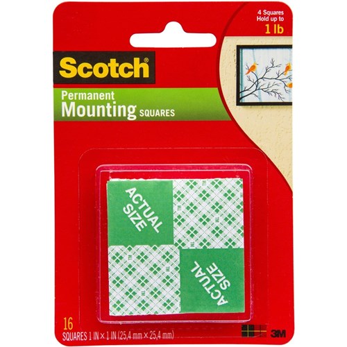 Scotch 111P Mounting Tape 2.5cmx2.5cm Indoor Squares Pack of 16