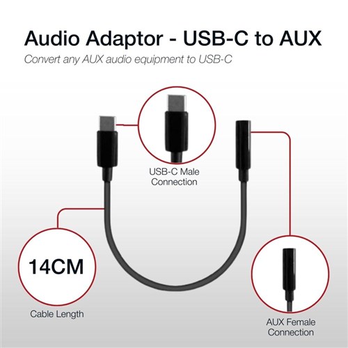 • USB Type C to AUX Female Wired Headphone Jack w/32-bit DAC.