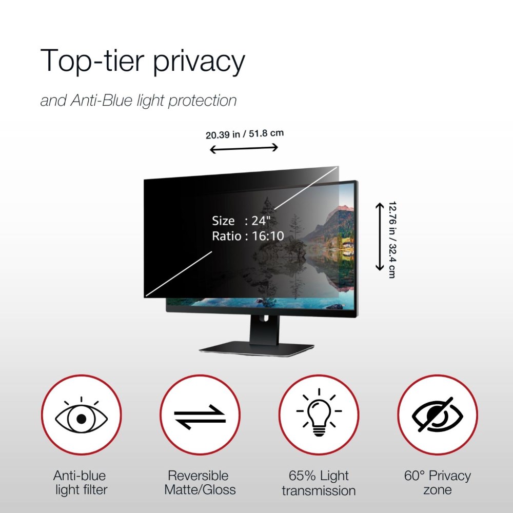 • Privacy, blue light reduction and anti-glare technology.