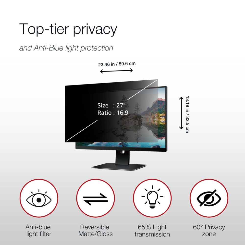 • Privacy, blue light reduction and anti-glare technology.