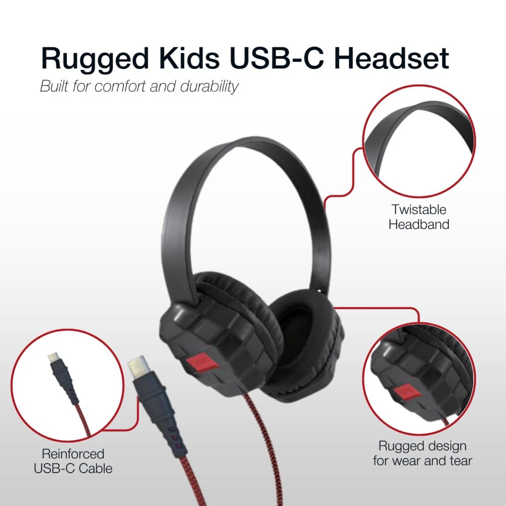 Shintaro Rugged Kids Headset With Enhanced USB-C Connector Black