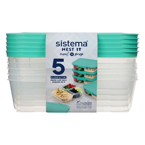 Sistema Nest It Meal Prep Food Storage Containers 1.9 Litre Clear Pack Of 5
