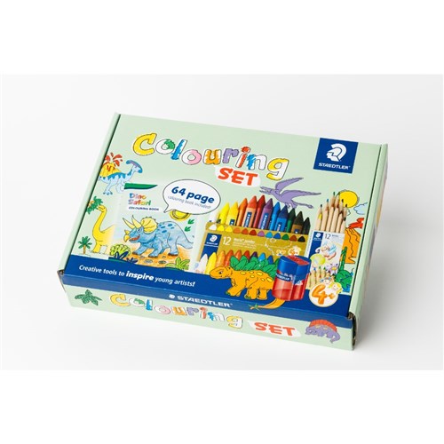 • These comprehensive 6 piece colouring sets include an assortment of coloured pencils, twisted crayons, and sharpener, plus a 64 page colouring book.