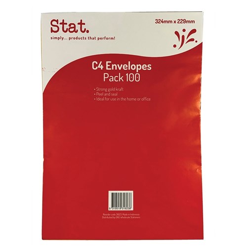 Stat Peel And Seal Envelope C4 Kraft Pack of 100