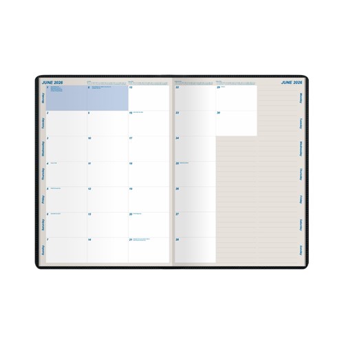 • The planner features a month to view layout and stapled binding.