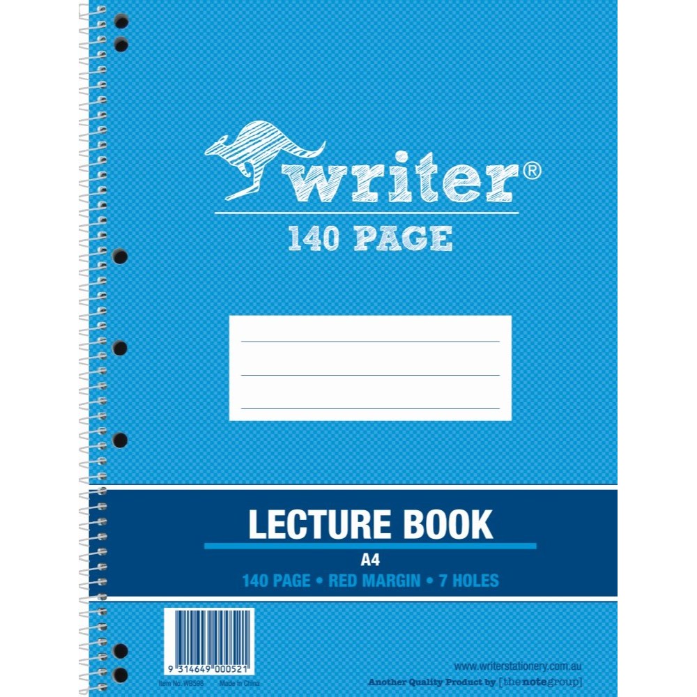 Writer Spiral Lecture Book A4 7 Hole 8mm Ruled With Red Margin Side Bound 140 Page