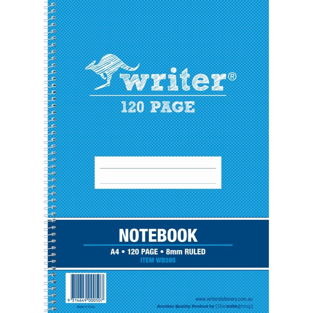 Writer Spiral Notebook A4 8mm Ruled Side Bound 120 Page