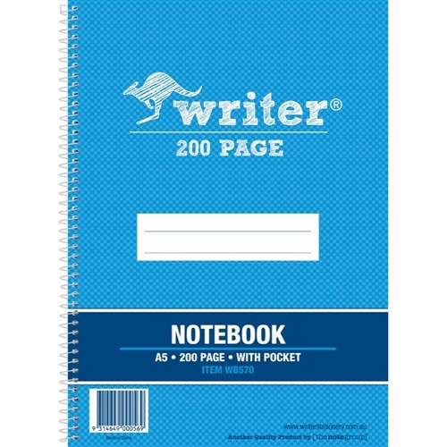Writer Spiral Notebook A5 8mm Ruled With Pocket Side Bound 200 Page