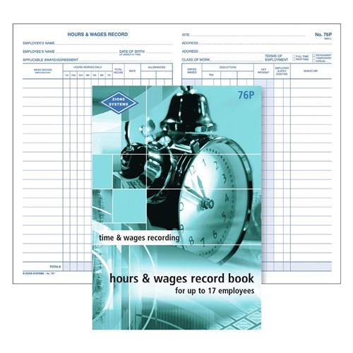 Zions 76P Hours & Wages Book Up To 17 Employees 205x130mm