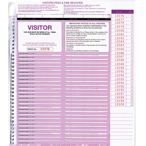 • Every visitor receives a personal visitors pass which is written out and issued. Because the register is in a security format, it means that no one can see who has signed in previously.